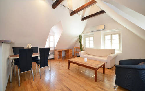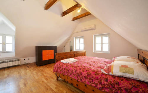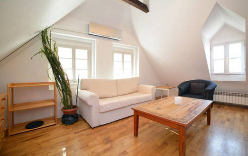 This stunning renovated 1-bedroom apartment boasts modern with Old charm, on unforgettable location at the old part of the town, Gornji grad! The building, is just few minutes walk from the main square. The first floor apartment of approx. 70 sq m of living space, features a large open-plan living room with fully equipped kitchen, spacious bedroom, bathroom, hallway., equipped with internet, satellite TV, AC, gas central heating. The view of the apartment is most charming. This apartment is great for living, and ideal for single person or a couple.