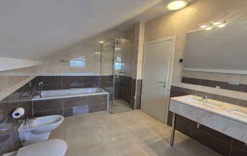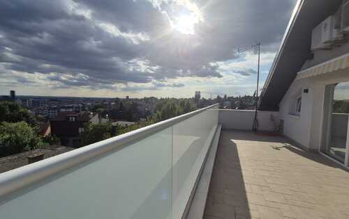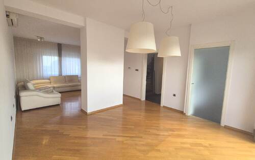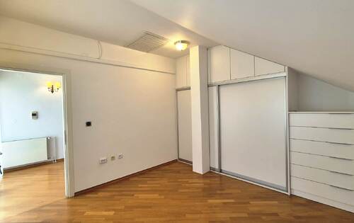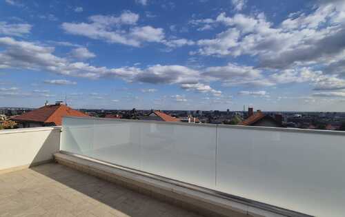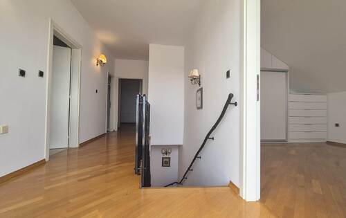 180 sq m of living space with two beautiful terraces and a view of the entire city. The apartment consists of an anteroom, entrance hallway, kitchen (dishwasher, oven, microwave, fridge with freezer, gas/electric hob), dining room connected to the living room and exit to the terrace, study/guest room - if desired, bathroom with shower and toilet, pantry/storage room with additional fridge and space for washing machine and dryer. On the first floor there is an even larger terrace with water/shower, awning (so you can enjoy sunny days), bathroom with bathtub and separate shower cabin, two bedrooms with built-in wardrobes and Velux automatic roof windows (mosquito nets, blinds, blackout curtains and rain sensors) the third bedroom has a walk-in wardrobe. All the windows are PVC with mosquito nets, every room has a window, the apartment is spacious and bright, the heating is gas-central, utilities (water, electricity, gas are paid by consumption) two parking spaces in the yard.