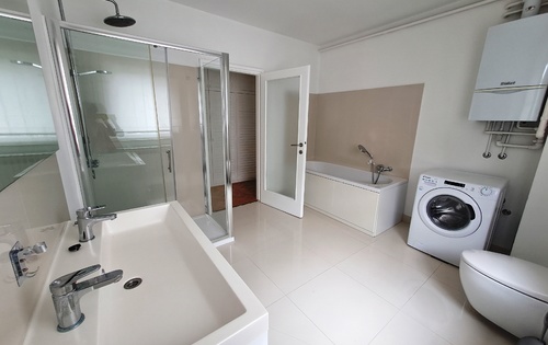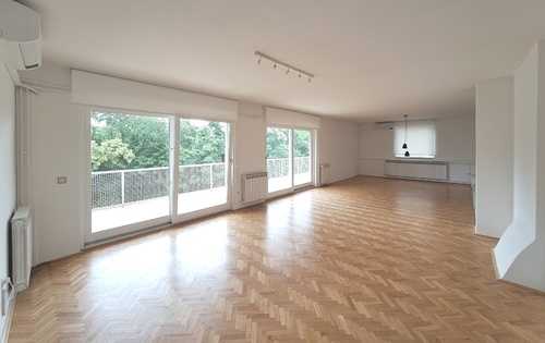 This property is placed on 1st floor in 2-storey house with 2 apartments in total. It has separate access and one covered parking reserved. The property has approx. 150 sq m and holds entry hall, large living room with terrace of 25 sq m facing Zelengaj forest, separate kitchen, 3 bedrooms, one large bathroom with shower and bathtub, and guest toilet. Very peaceful location just above Britanski square and street Ilica. The apartment is available unfurnished.