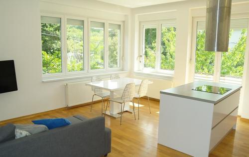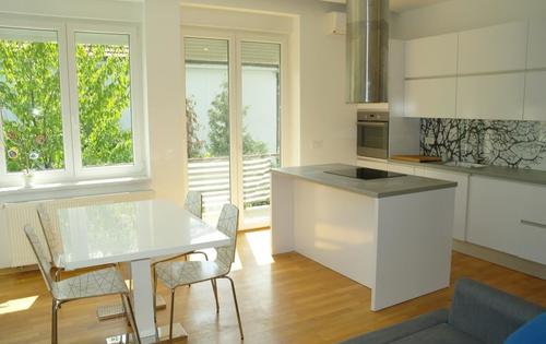 Nice modern apartment with garden, of approx.120 sq m on the 1st floor of a family house. It consists of an entrance hall, living room with exit to the terrace, dining room, kitchen, three bedrooms and two bathrooms. The apartment is air-conditioned, has security doors, ceiling height 280 cm and fully equipped kitchen. It is located in a residential location surrounded by greenery. Northern part of the city, wide access road in a tram zone. It is located near all amenities, about 5 minutes with car from city center and about 10 minutes walking distance.