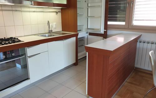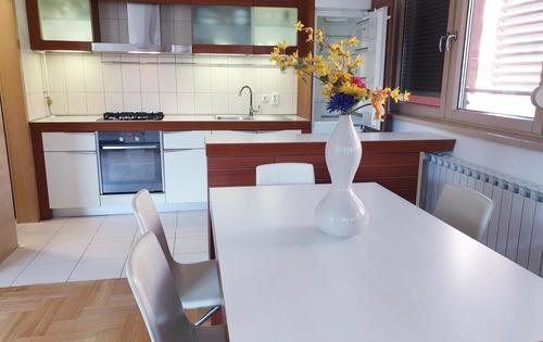 This apartment is placed in Ilica Street, on 2nd floor in a 7-storey building with elevator, and has approx 95 sq m of living space, garage space and storage (6 sq m). It is very good located property, and it is close to the main square only 15 min. by public transport. The apartment has 1 double bedroom, 1 bedroom/study room, bathroom, separate toilet, beautiful open plan living room with kitchen and good size balcony. Garage space is included in the price.