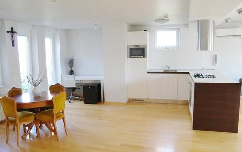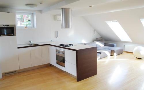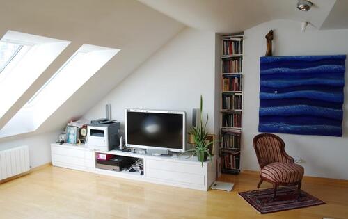 This beautiful apartment is located on the 3rd floor and has approx. 80 sq m. The apartment consists of a spacious living room with kitchen and dining area, a separate sleeping area with a double bedroom, a single bedroom and a large bathroom. The apartment has a lot of daylight, to the north it has French windows overlooking the courtyard, to the south and west it has large roof windows. The property is located at the beginning of Medvedgradska Street, near Tkalciceva Street and the tram stop in Medvescak Street, walking distance from the main square is 10 minutes. There is the possibility of using the garage in the yard.