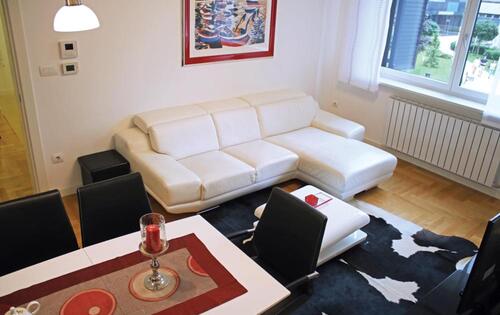 A great location apartment in a new building, with 3 bedrooms, a living room, a fully equipped kitchen and 2 bathrooms with a shower and a hot tub. The apartment has a loggia overlooking the garden. Air-conditioned, washing machine and dryer, Internet, garage space. Located in Strojarska Street near the Bus and Main Railway Stations.
