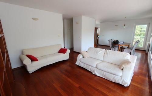 A luxury 3-room apartment, of 117 sq m living space, is located on the first floor of the building. The property has two floors. On the upper floor there are three bedrooms and a spacious bathroom. Two rooms on the upper floor have access to a shared terrace. On the lower floor there is a kitchen, a spacious living room and a bathroom. Living room has access to a large covered terrace with beautiful views of the forest. The apartment is fully furnished and equipped with kitchen appliances. The garage is included in the rental price. The property is in a quiet location only a few minutes drive from the street Ilica, close to Clinical Hospital Centre Sestre Milosrdnice and Park Dr. Franjo Tudjman.