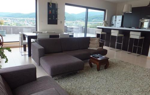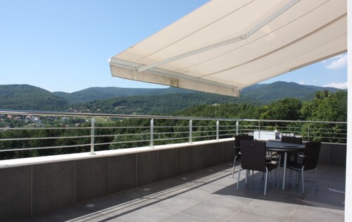 This property is located in north part of Zagreb on Gramaca, and has approx 125 sq m of living space and 2 terraces of 40 and 20 sq m. Closed swimming pool is available for the tenants in the building. The apartment consists of 3 bedrooms, 2 bathrooms, kitchen, and storage. The building has an elevator that goes directly to the apartment. Two reserved parking spaces and one storage of 16 sq m is available. The property is very well equipped, it has central gas heating, Internet, air-condition, alarm, washing machine and dishwasher.