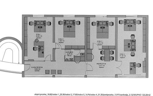 This spacious office of 125 sq m is placed on 4th floor in 4-storey building. The offices is fully furnished and very well equipped with air-condition, central heating and alarm system. This office consists of an entry hall, 4 spacious rooms, bathroom and lobby. Average monthly costs for utilities are approx 3,60 EUR per sq m. Two parking spaces are available for this office.