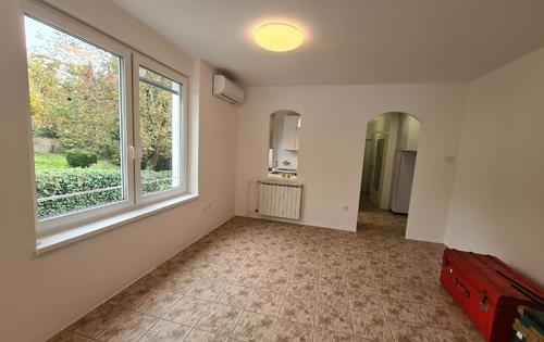 This charming apartment is situated in quiet cul-de-sac close to Tuskanac park. Ideal for a couple or a small quiet business. This apartment contains of: entrance hall, walk in couboard, living room with dining area of 20 sq m, separate kitchen, bathroom with shower, very bright and good size bedroom. Tiled, covered terrace and garden for pleasant relaxing times. Total area with a terrace holds 100 sq m. Two parking places. Apartment is available unfurnished or furnished.