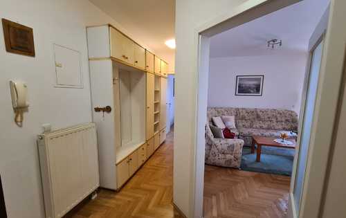 This apartment is situated on the 2 floor in a newer building in Gajnice. It consists of hallway, living room with kitchen and dining, loggia, double bedroom and a bathroom with shower. The apartment is very bright, orientation east-north. It is fully equipped, it has dish washer, washing machine, AC, gas heating, one parking space reserved in front of the building. The property is located near bus stops in Bologna alley and Bolnicka street, very wll connected with Crnomerec, also close to the train station in Vrapce. This neighbourhood has everything you need for a comfortable living.