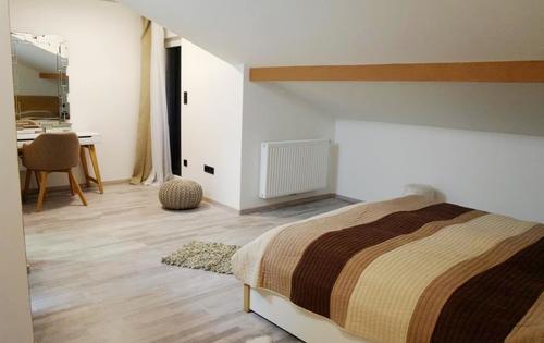 This duplex apartment of approx. 50 sq m is located in a modern urban villa, on south part of the city, in a residential area. The ground floor consists of a living room, kitchen with dining area, bathroom and a spacious terrace facing the backyard. There is a possibility of using the garden with barbecue. On the upper level there is a bedroom with closets, bathroom with shower, loggia. The apartment is fully furnished, with dishwasher, washing machine, AC in the bedroom and a reserved parking space. This property is close to Slavonian Avenue, Vukovarska street, National University Library, Vatroslav Lisinski concert hall.