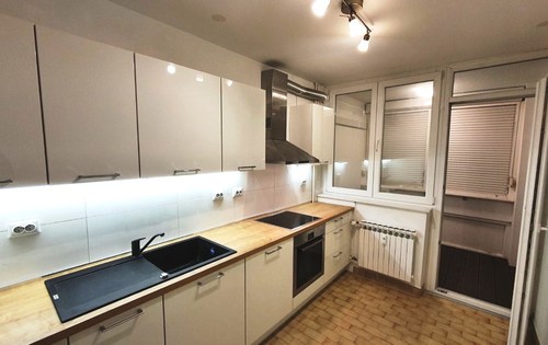 Newly refurbished apartment of 75 sq m in Spansko situated on the 3rd floor in a building without an elevator. This apartment consists of living room, kitchen, dining, 2 bedrooms, pantry, 2 loggias and bathroom with a shower. The kitchen is fully equipped with new appliances, the apartment has dish washer, washer/drier, AC, Internet, security door, plenty of parking spaces in front of the building. This property is located in neighbourhood Spansko near bus stop, close to the market, shopping centers, Zagrebacka and Ljubljanska avenue.