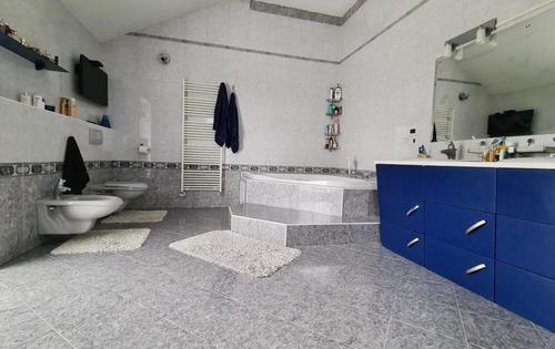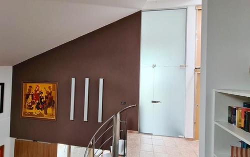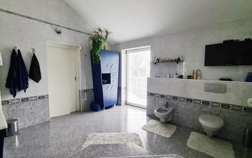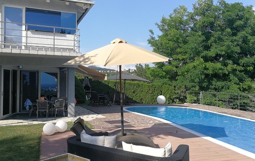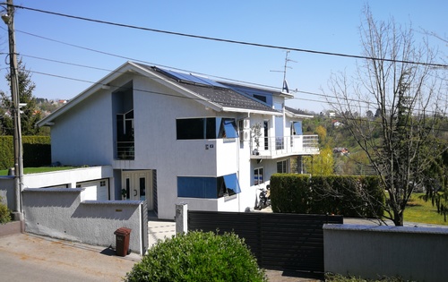 This 2-storey property build in year 2000, is placed in west side of town and has approx 340 sq m of living space and land of approx 2300 sq m. It is placed on slight hill and has great panoramic view of Zagreb. The property is build with high standard of material. Very good isolation material secures a low cost of heating and cooling. It is faced on the south side and has plenty of sun light. It has also solar system for heat water for house and swimming pool. Ground floor has large living/dining area with open fire and access into the terrace and garden. On the ground floor is also placed kitchen, large study room, laundry with central heating and solar system control room, and guest toilet. Top floor is connected with double stairs that provide a circle moving through the house. On top floor is placed 3 double bedrooms, large balcony, and 2 bathrooms. There is double garage with directly entry into the house. There is also a plenty of parking space in the front yard. Very nice garden has automatically water supply. In the yard is placed old wooden house/storage off approx 50 sq m. Villa has central heating on oil/gas, air-conditioning, 3 telephone lines, ISDN, TV/SAT, security and alarm system.