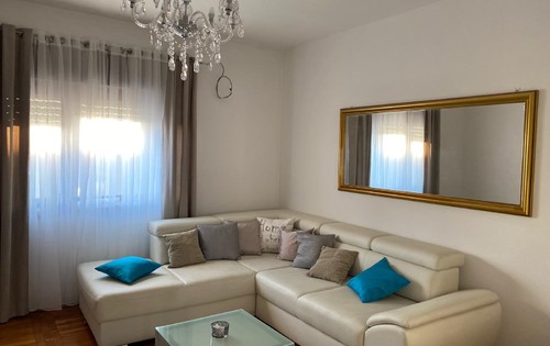 Beautifully furnished 2 bedroom, newly renovated apartment in Donja Dubrava. The apartment is fully equipped, comfortable accommodates 4 people. It is situated on the 1st floor, and it consists of two bedrooms with double beds, spacious living room connected with well equipped kitchen with dining area, bathroom with walk-in shower, washing machine and dryer. The apartment has a terrace, a separate entrance with free parking in the yard with a security camera system. This property is located in a quiet street, Just 7 km distance from the main square, close to Knez Branimir Street, just 10 minutes away from the tram stop on Dubrava Avenue, markets, restaurants, hospital, several universities, banks, and shopping facilities. The apartment is only 15 minutes driving from the city center with all necessary content, and tourist attractions.