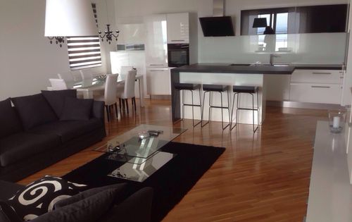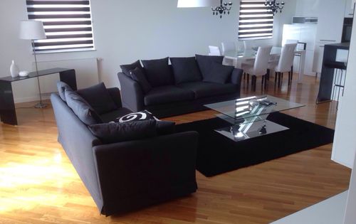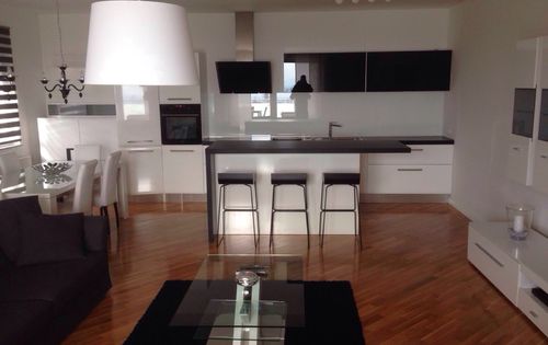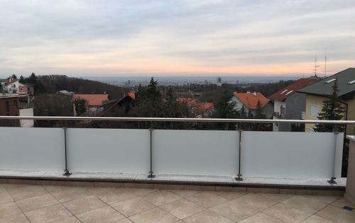 A beautiful three bedroom apartment with panoramic views of the city center. Living area of 150m2 with an additional 50m2 terrace. It consists of: large living room with kitchen and dining room, 3 bedrooms, 2 bathrooms + guest toilet, laundry room. Apartment has one garage and one parking space and part of common areas. Distance to the bus lines 100 sq m, distance to the primary school 500 sq m, distance from the center of Zagreb – 5 minutes by car.