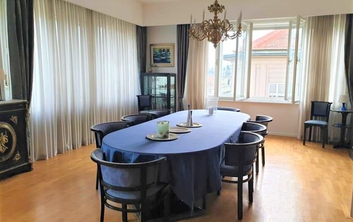 Spacious apartment situated on the 4th floor in a building with elevator. The apartment is in classic style and fully furnished. A beautiful two bedroom apartment in the city canter of approx.152 sq m of living area, consists of: very large living room with dining room, 2 bedrooms, 2 bathrooms + guest toilet, wardrobe and laundry room and two balconies. The property is in very high standard and is equipped with top quality furniture, kitchen, and bathroom furniture. Superb location and quality of this property provides very high standard of living in one of the best locations in Zagreb