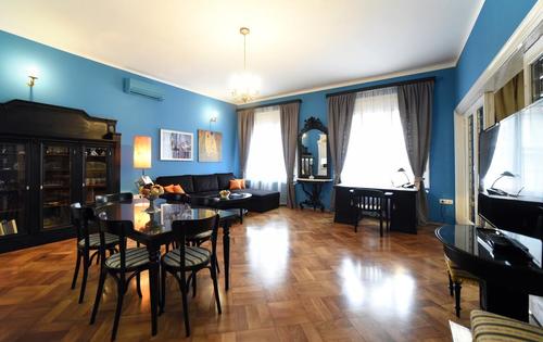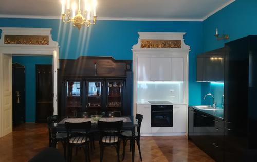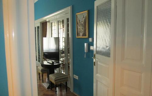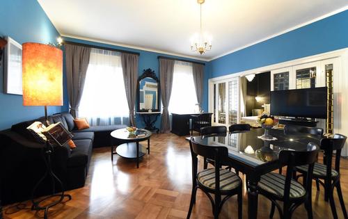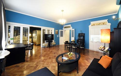 This unique property has approx 70 sq m of total living area and it is located on the 4th floor of a building which has an antique elevator. Apartment has been designed as an open space and it consists of bedroom with double bed, living room with sofa-bed, bathroom and toilet. This sophisticated apartment is completely furnished and has restored furniture of the LOUIS XVI period in the bedroom, and SECESSION period in the Living room, complemented with few pieces of carefully chosen modern furniture. It is also equipped with air-conditioner, Wi-fi, smart led TV with cable channels and small fully equipped kitchen. It is located in the center of the Zagreb just a minute walk to the main city square Ban Jelacic and it has a beautiful view to old upper town, Strossmayer promenade and Tower Lotrscak.