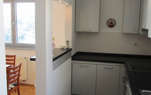 Oriented towards the other side of the hill not only does this property have a great location but it also offers a wonderful view of the surrounding area. It consists of 3 bedrooms, a kitchen with small storage room, a dining room, living room, two bathrooms a separate WC, and a terrace. All rooms have air conditioning. The apartment is fully refurbished, the building has an elevator and 2 parking spaces are available.