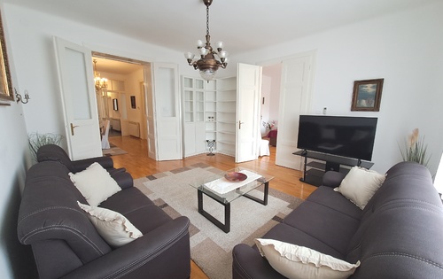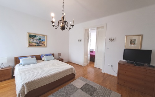 This spacious 3-bedroom apartment is placed on 4th floor in 4-storey building with an elevator and has approx 130 sq m of living space. The property has two double bedrooms, single bedroom, living room with balcony, kitchen, large dining room, bathroom and guest toilet. One parking space is reserved in the back yard. It is located in the city center, a 5-minute walk to Park Zrinjevac and Ban Jelacic square.