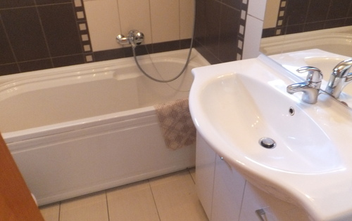 This property is placed in ground floor in 3-storey building and has approx 94 sq m of living space. The property comprises 1 double bedroom, 2 single bedrooms, 2 bathrooms, and open plan kitchen with terrace. Deepens of tenants wishes, the owner can provide all furniture. It is equipped with central gas heating, washing machine, dishwasher, air condition, alarm and one parking space.