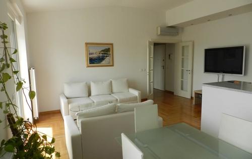 This nice 2-bedroom apartment is located on the 5th floor in a new building with an elevator and parking space. The apartment has 65 sq m, it consists of an entrance hall, bathroom, spacious living room with kitchen and exit to loggia, one single bedroom and master bedroom. Loggia extends along the living room and bedrooms, and it has approx. 7 sq m. The apartment is oriented southeast, and has plenty of daylight. It is located on Vrbik, near Slavonska Avenue and Savska Street.