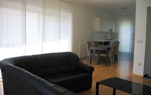 Apartment of 120 sq m in size, placed on the first floor of a new building located in Vrhovec Area, north from Ilica, peaceful area in greenery. The apartment is fully furnished and equipped and it comprises an open plan kitchen with diner and living room, 3 good size bedrooms, 2 bathrooms, 1 guest toilet, 2 balconies and garage space. The apartment is equipped with video camera surveillance, alarm system, air-conditioner in all rooms, gas central heating, double glazing, Jacuzzi, internet installation and satellite TV. It is ideal for a family or a couple who wants to live in comfort. There is a trampoline in the courtyard available for children.