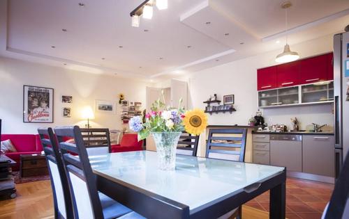 Fully renovated apartment in centre, only 10 minutes from the main square. This property is placed on the second floor and has approx. 70 sq m of living space. It has one double bedroom, one single room, living room with kitchen, bathroom. It is very nice furnished property, located close to Britanski Square, only 2 tram stops from the Main square. It is equipped with central gas heating, dishwasher, washing machine and Internet connection.