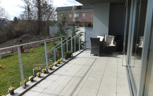 This modern apartment has built to provide a high standard of living, with, floor heating, open fire and garage. The apartment has approx. 140 sq m of living space and has 3 bedrooms, fully equipped kitchen, large living room / dining room and a 15 sq m terrace with access to the garden of 300 sq m. The apartment has one double garage. It is a peaceful location in the neighbourhood of international schools and kindergarten with easy access to the city centre.
