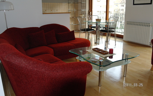 This property is placed in 3rd floor in building with elevator. It has approx 80 sq m and holds 2 bedrooms, 2 balconies, open plan kitchen and bathroom. Very good located apartment, close to centre and public transport.