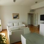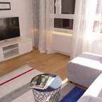 This modern two bedroom apartment of approx. 70 sq m of living area, is located a short walk from the Main Square. The apartment is placed on the 5th floor with elevator. This property comprises of an entrance hallway which leads on the right to an open plan kitchen/living area with guest toilet. On the left of the hallway there is one double bedroom with bathroom and one single bedroom with bathroom. The apartment is furnished to a high standard; with AC. The apartment also has an available garage parking space.