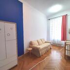 This apartment of 85 sq m is located on the second floor; it consists of three spacious rooms, currently one bedroom, living room and a dining room which can easily be set as a second bedroom, separate kitchen with a balcony overlooking the courtyard, bathroom, guest toilet and hallway. The orientation of the apartment is east-west. Central gas heating. The apartment is very spacious and bright, in a great position right in the center.