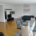 This nicely furnished apartment is situated on the ground floor and it has 126 sq m of living space. It consists of three bedrooms of which two have an access to balcony of 12 sq m, bathroom, guest toilet, living room with open space kitchen and terrace of 60 sq m. The apartment is equipped with alarm and video surveillance system, it has one open and one covered parking space. Pets are not allowed. This property is located in Bukovacka street at very nice area of Zagreb close to Maksimir Park.