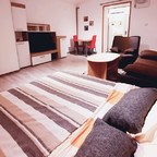 The property is situated in a new building with elevator and has approx.68 sq m of living space with garage space reserved. It holds entry hall, open plan kitchen with pantry, 1 double bedroom, bathroom. Equipped with washing machine, dishwasher, fridge, and freezer, gas heating, AC, internet, cable TV. This apartment is located in Slovenska street, only 15 minutes by walk from the main square. Perfect for a couple or a single person.