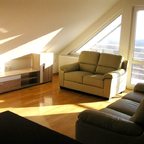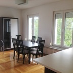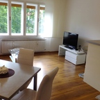 This property is placed on the 1st floor of house with 2 apartments in total, and has approx. 80 sq m of living space. It holds 3 rooms, separate kitchen with dining, bathroom, 2 terraces and part of garden in use. The property is fully furnished and equipped with internet, cable TV, washing machine. Parking free of charges is available on the street.