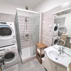 The apartment is situated on the 3rd floor in a building without an elevator. It consists of a hallway, living room with access to the balcony (orientation west) pull out corner sofa and tv, double bedroom, kitchen with all cutlery and crockery, toaster, kettle, oven and cooker, bathroom with shower, washing machine and dryer, separate toilet. Internet and AC are installed in the apartment. Public parking around the building is free.