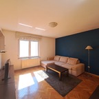 This property is placed very close to centre and public transport. It has hall, 2 bedrooms, living room, kitchen, balcony (7 sq m), bathroom and separated toilet. It is equipped with central gas heating, air-condition, internet, phone and cable TV. One garage space is available.