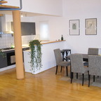 This apartment is placed in 5th floor in 8-storey building and has approx 50 sq m of living space. It has entry hall, one double bedroom, open plan fully equipped kitchen, bathroom with washing machine and dryer, and balcony. It is not a big apartment, but everything there is in it is top quality (Wollbett bed and mattress, Eduro wardrobes, and Miele appliances, 3D package from BNET, which includes telephone (national landline calls are practically for free), internet (unlimited, wireless, flat-rate) and cable TV (100 channels). It has air-condition, central gas heating and one parking space is reserved.