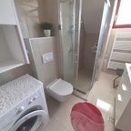 This apartment is placed on top floor in 2-storey building and has approx 73 sq m of living space. It consists of entry hall, open plan fully equipped kitchen, balcony, one double bedroom, one single bedroom, bathroom and guest toilet. The property is equipped with central gas heating, air-condition, satellite TV, ADSl internet and telephone connection. One parking space is reserved in the secured yard. In the yard is placed barbeque with gazebo that can use all tenants in the building.
