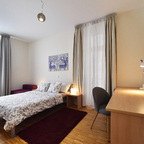 These properties are placed on 2nd floor in the 3-storey building and have approx 170 sq m of living space. It is gorgeous property with large rooms and 2 terraces. It has 2 double bedrooms, 1 study room, 2 living room, and kitchen with dining, 2 bathrooms and separated toilet. It is excellent location in beginning of Pantovcak street. The property is equipped with central gas heating, ADSL internet, washing machine, dishwasher and satellite TV.