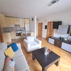 This nice apartment is situated on the 3rd floor in a new building with elevator. It consists of living room with kitchen, loggia, bedroom, bathroom with bathtab. The apartment is newly furnished, it has washing machine, AC, Internet. Property is located in business zone near Knez Branimir and Radnicka streets, few minutes away from Main bus station in Zagreb.