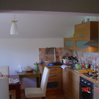 This 2 floor apartment is located 10 minutes from the center of Zagreb by car. In ground floor has 2 double bedrooms, lounge with kitchen and dining area and bathroom. From dining area you are exiting to the balcony witch is going along the apartment and finishing with terrace space. On first floor apartment has playing/lounge room with exit to the balcony, bathroom and 2 single bedrooms. With apartment comes one garage space and Garden. Apartment is in peaceful area surrounded with grass and forest.